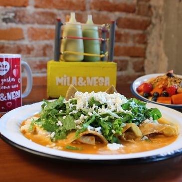 Disfruta fruta fresca, jugo natural y un platillo a elegir entre enchiladas, chilaquiles, huevo al gusto, molletes o hot cakes.
